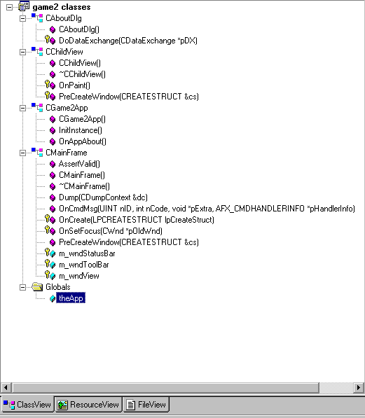 e.g. a class “Game” will be named as “CGame”. Your new class will be displayed